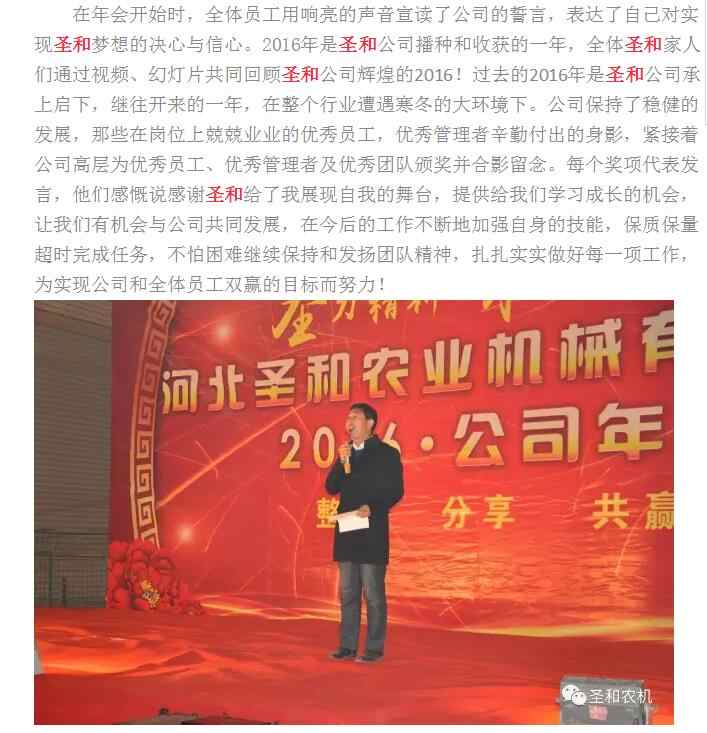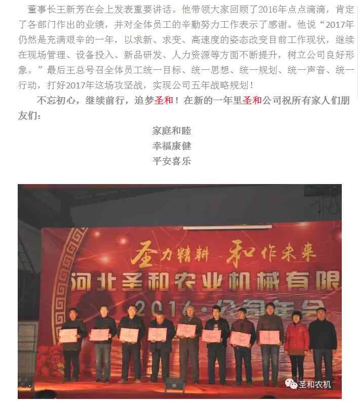圣和農(nóng)機(jī)2017年度表彰暨新春聯(lián)誼晚會