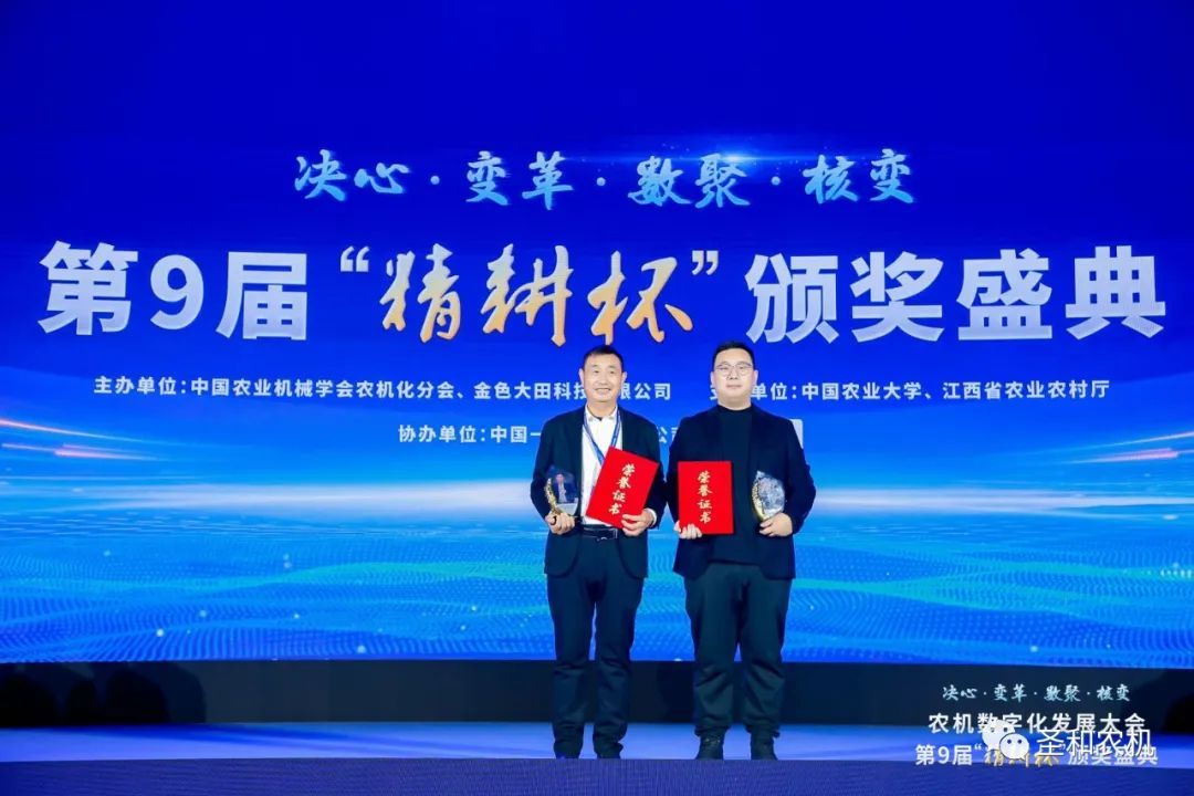 2023年12月9日在革命圣地南昌,農(nóng)機數(shù)字化發(fā)展大會暨第九屆“精耕杯”頒獎盛典隆重舉行!此次盛會由中國農(nóng)業(yè)機械學(xué)會農(nóng)機化分會與大田農(nóng)社丨農(nóng)機360網(wǎng)共同舉辦。 “精耕杯”獎項評選是先在全國進行網(wǎng)絡(luò)投票晉級參評對象,后經(jīng)過專業(yè)用戶評審團、企業(yè)評審團、特邀專家評審團層層嚴格評審出來的,其含“金”量可想而知,被譽為中國農(nóng)機行業(yè)的“奧斯卡”!