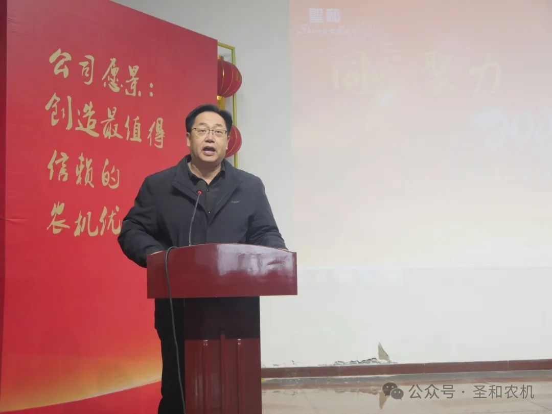 2024年2月1日,河北圣和農(nóng)業(yè)機械有限公司2023年度總結(jié)大會暨答謝宴會在公司培訓(xùn)廳隆重舉行。本次大會由圣和公司營銷管理中心總經(jīng)理郭廣彥主持,圣和公司董事長王新芳、總經(jīng)理師西峰、副總經(jīng)理王帥及各中心總經(jīng)理蒞臨大會現(xiàn)場,公司各級領(lǐng)導(dǎo)、管理人員及公司全體員工參加了盛典。