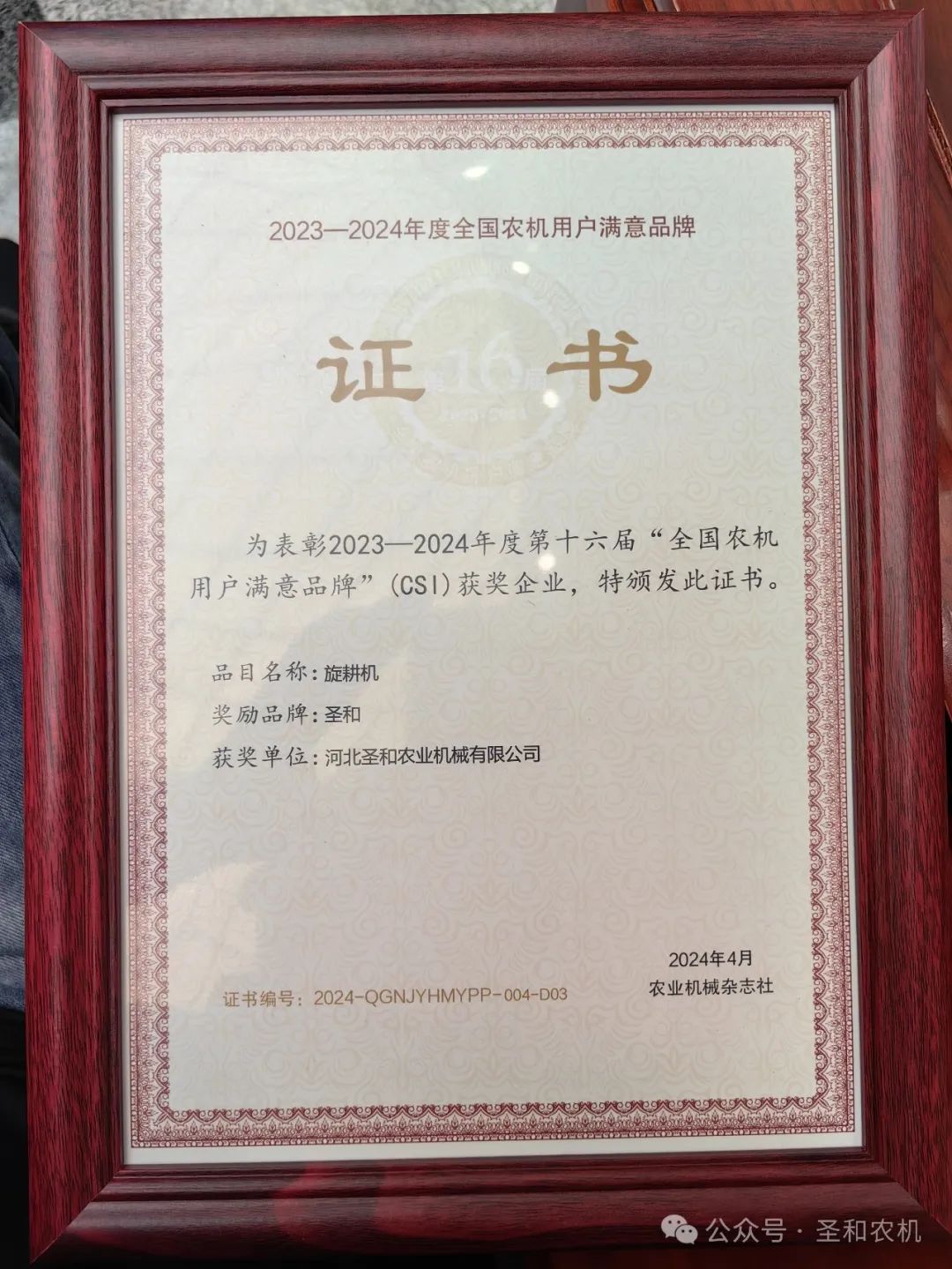 “圣和”品牌從第十屆至十五屆蟬聯(lián)榮獲全國(guó)農(nóng)機(jī)用戶(hù)滿(mǎn)意品牌大獎(jiǎng)。此次“圣和”牌再次蟬聯(lián)第十六屆全國(guó)農(nóng)機(jī)用戶(hù)滿(mǎn)意品牌大獎(jiǎng),是來(lái)自于廣大用戶(hù)、行業(yè)專(zhuān)家、領(lǐng)導(dǎo)們對(duì)圣和公司產(chǎn)品的肯定和厚愛(ài),更是對(duì)“圣和”品牌的高度認(rèn)可。