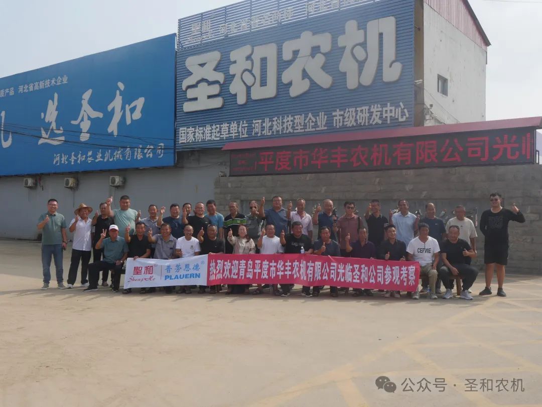 2024年8月14日,平度市農(nóng)機(jī)手、合作社代表40余人,在青島平度市華豐農(nóng)機(jī)有限公司陳秋里總經(jīng)理的帶領(lǐng)下,到河北圣和農(nóng)業(yè)機(jī)械有限公司進(jìn)行實(shí)地參觀考察。圣和公司營銷管理中心總經(jīng)理郭廣彥對參觀團(tuán)的來訪表示熱烈的歡迎,并熱情接待。