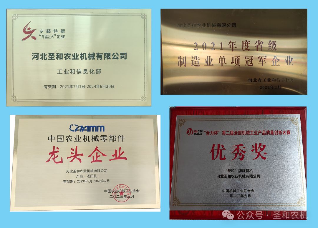 公司被授予國家級專精特新“小巨人”企業(yè)、河北省“專精特新”示范企業(yè)、河北省耕作機械技術(shù)創(chuàng)新中心依托單位、省級制造業(yè)單項冠軍企業(yè)、河北省首批縣域特色產(chǎn)業(yè)集群“領(lǐng)跑者”企業(yè)名單。身處行業(yè)當中,圣和公司積極參與和承擔(dān)行業(yè)、協(xié)會等發(fā)起各項產(chǎn)品的標準起草編寫工作,推動了行業(yè)發(fā)展。