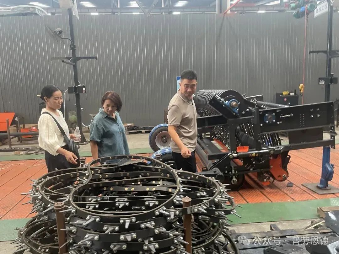 營(yíng)銷管理中心副總經(jīng)理王周廣向阿克蘇領(lǐng)導(dǎo)們介紹了普勞恩德公司的發(fā)展歷程、業(yè)務(wù)范圍和隊(duì)伍建設(shè),并引導(dǎo)領(lǐng)導(dǎo)們參觀了公司各生產(chǎn)車間,熱情的向各領(lǐng)導(dǎo)介紹了公司近期的發(fā)展?fàn)顩r和未來(lái)的發(fā)展方向,先后參觀了公司核心產(chǎn)品:殘膜回收與秸稈粉碎還田聯(lián)合作業(yè)機(jī)、自走式青飼料收獲機(jī)、全齒輪傳動(dòng)圓捆機(jī)等。