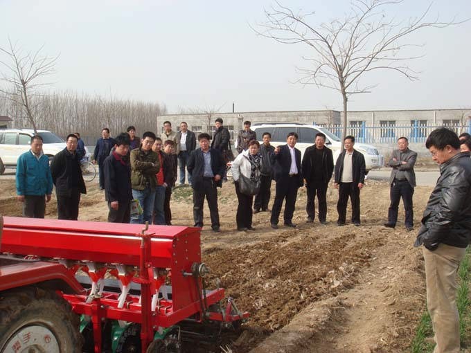 3月23日在河北省農(nóng)機推廣站孫東法站長的陪同下,上海市農(nóng)機推廣總站夏海榮站長、上海市農(nóng)機推廣站甘俊彥科長、王學云科長一行來我公司參觀深松機項目,隨行來的還有上海各區(qū)縣負責農(nóng)機推廣的領導。一行人參觀了公司產(chǎn)品展廳后來到公司機具實驗基地,現(xiàn)場觀看了公司深松機、旋播機的演示作業(yè),期間公司王新芳董事長向各位領導詳細講解了深松機的應用原理、作業(yè)效果以及適用范圍,各位領導對此次現(xiàn)場演示作業(yè)做出了很高評價,對公司產(chǎn)品也抱有很高期望。