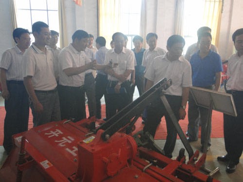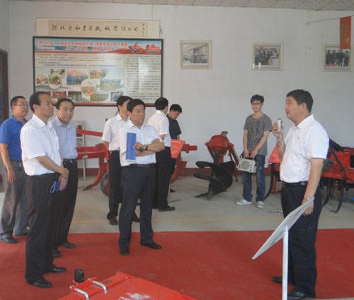 公司王董事長向馬廳長(中)介紹公司深松機(jī)具