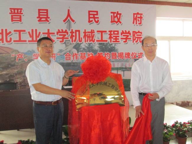 2013年6月8日,河北工業(yè)大學(xué)機(jī)械工程學(xué)院產(chǎn)、學(xué)、研合作基地簽約暨揭牌儀式, 學(xué)院黨委書記張成德、戴士杰副院長、副縣長攸超、縣工信局白志芬局長、大陸村鎮(zhèn)黨委書計(jì)蔡侗江、鎮(zhèn)長宋瑞剛一同出席了揭牌儀式.