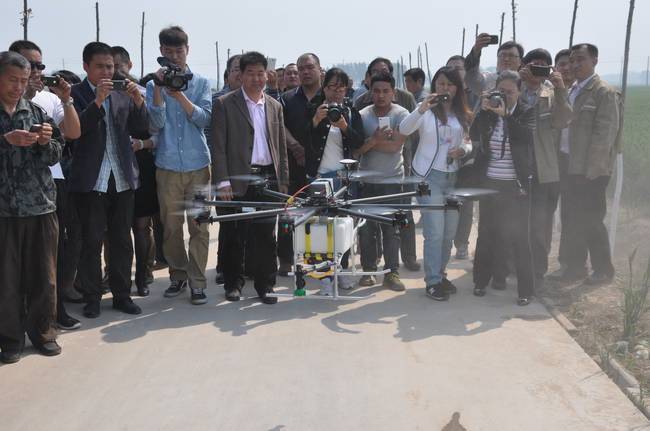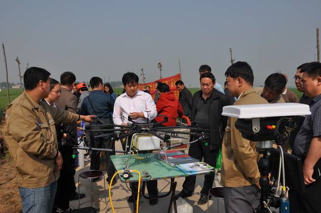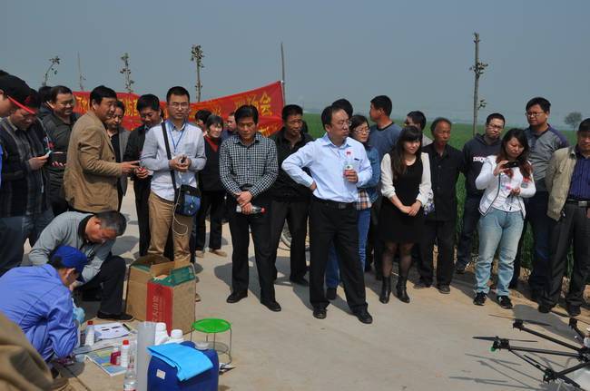 4月29日,我公司與西安鯤化航空科技有限公司聯(lián)合研制的“無(wú)人植保飛機(jī)”與河北威遠(yuǎn)生化有限公司達(dá)成共識(shí),在藁城展開了一次“無(wú)人植保飛機(jī)實(shí)地藥物防治試驗(yàn)示范”現(xiàn)場(chǎng)會(huì)。到場(chǎng)參觀的有農(nóng)業(yè)局局長(zhǎng)趙勝哲、省植保站楊炎杰、市植保站王維蓮、圣和董事長(zhǎng)王新芳、威遠(yuǎn)生化農(nóng)藥總經(jīng)理范朝輝,農(nóng)業(yè)局局長(zhǎng)等領(lǐng)導(dǎo)在觀摩機(jī)具作業(yè)后,給予了高度評(píng)價(jià)。