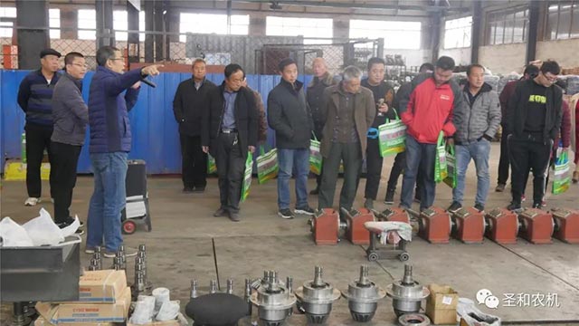 之后,依次對下料車間、焊接車間、噴涂車間、組裝等車間進(jìn)行了參觀,營銷總經(jīng)理張培增在整個(gè)過程中對每一個(gè)生產(chǎn)制作環(huán)節(jié),以及旋耕機(jī)、還田機(jī)等多種機(jī)具的工作原理、效果與適用土地作出講解,培訓(xùn)班學(xué)員參觀完畢后對圣和公司生產(chǎn)工藝與產(chǎn)品給予高度肯定,紛紛表示獲益良多,將持續(xù)支持與關(guān)注圣和農(nóng)機(jī)