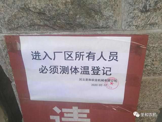 河北圣和農(nóng)業(yè)機(jī)械有限公司嚴(yán)格遵守各級政府的疫情防控安排,嚴(yán)格做好復(fù)工前的準(zhǔn)備工作。主要措施如下:1、成立疫情防控領(lǐng)導(dǎo)小組,逐級建立防疫工作組,層層防控。2、通過網(wǎng)絡(luò)、宣傳版與電子大屏播放等多種手段,宣傳貫徹防疫制度與防疫知識,加強(qiáng)員工的監(jiān)督與管理。3、在公司門口建立二十四小時值班的疫情防控點、應(yīng)急隔離室、嚴(yán)格限制外來人員與車輛進(jìn)入廠區(qū),建立職工每日排查制度。4、統(tǒng)計與購買防疫物資:口罩、防護(hù)眼鏡、橡膠手套、消毒酒精、洗手液等,每個車間配備廢棄口罩收集桶、消毒酒精、洗手液等個人防護(hù)用品。5、每天對全廠區(qū)、全覆蓋進(jìn)行消毒殺菌。6、建立健全防疫規(guī)程和制度。制定了完備的錯時上下班、每天的體溫監(jiān)測、分散就餐制度等,減少人員聚集,加強(qiáng)室內(nèi)通風(fēng)。7、建立針對員工發(fā)燒、乏力、干咳、呼吸困難等癥狀的應(yīng)急預(yù)案,隔離措施與應(yīng)急交通送醫(yī)路線、定點醫(yī)院聯(lián)系等預(yù)案。