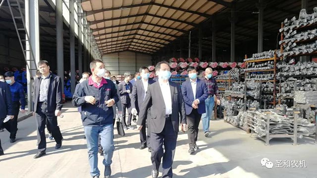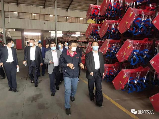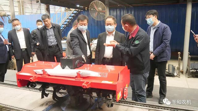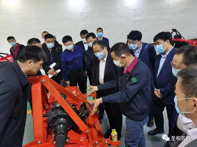 在參觀考察過程中,董事長詳細(xì)介紹每一個(gè)生產(chǎn)制作環(huán)節(jié),不同農(nóng)機(jī)的作用與特點(diǎn),參觀完畢后領(lǐng)導(dǎo)對(duì)圣和公司的管理模式、生產(chǎn)工藝等給予高度評(píng)價(jià),并給出了提升建議。
