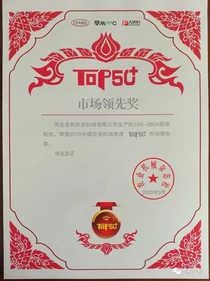 9月27日,2020年第八屆中國農(nóng)機(jī)高端論壇(CAIF 2020)暨 2019 中國農(nóng)業(yè)機(jī)械年度 TOP50+頒獎(jiǎng)盛典”在北京舉辦。大會(huì)期間圣和公司產(chǎn)品1SS-280A型深松機(jī)榮獲“市場(chǎng)領(lǐng)先獎(jiǎng)”。