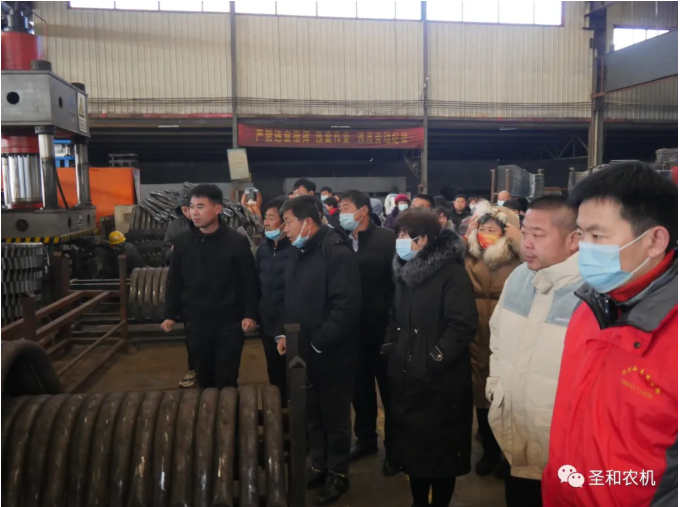 在參觀過程中,尹立羊經(jīng)理對每一個生產制作環(huán)節(jié),生產設備以及旋耕機、還田機等多種機具