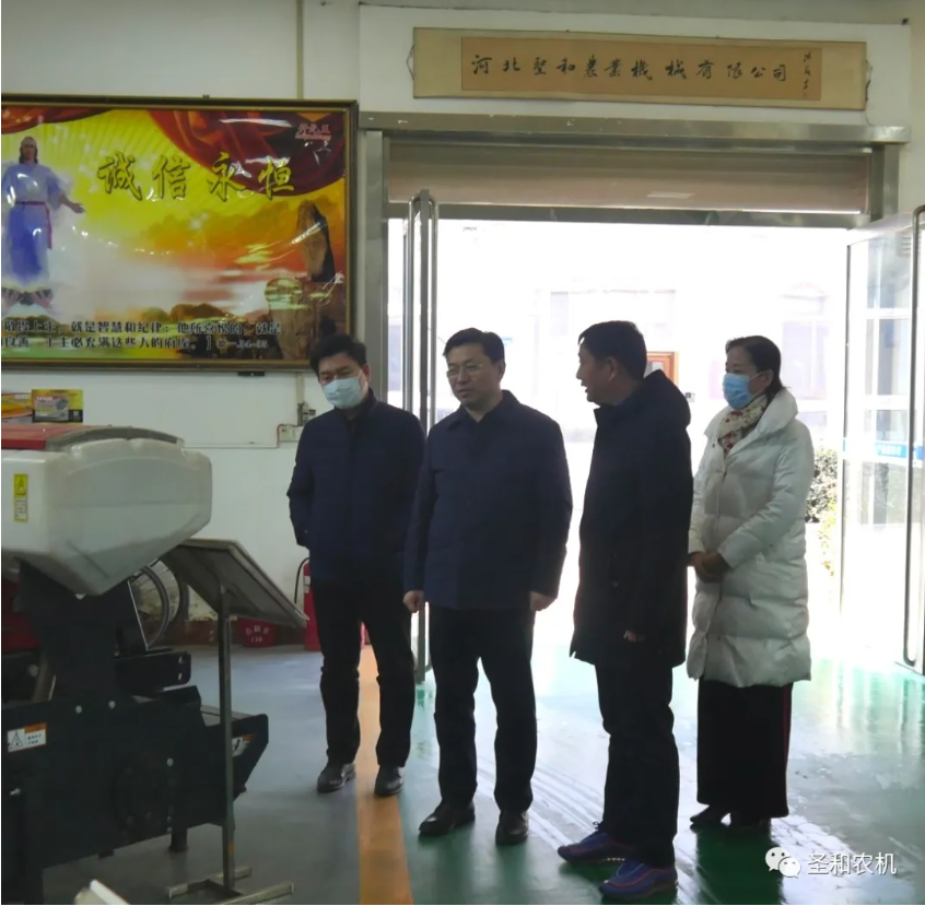 2022年2月16日,河北省農(nóng)機(jī)局戎局長,劉副局長,省推廣總站史站長,邢臺(tái)市趙局長蒞臨圣和公司調(diào)研!公司事長王新芳熱情接待!
