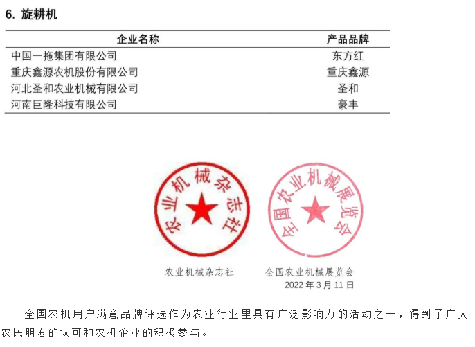 農(nóng)機(jī)用戶滿意品牌(CSI)”評選活動(dòng),經(jīng)過企業(yè)線上申報(bào)、網(wǎng)上投票點(diǎn)評、專家評審,共