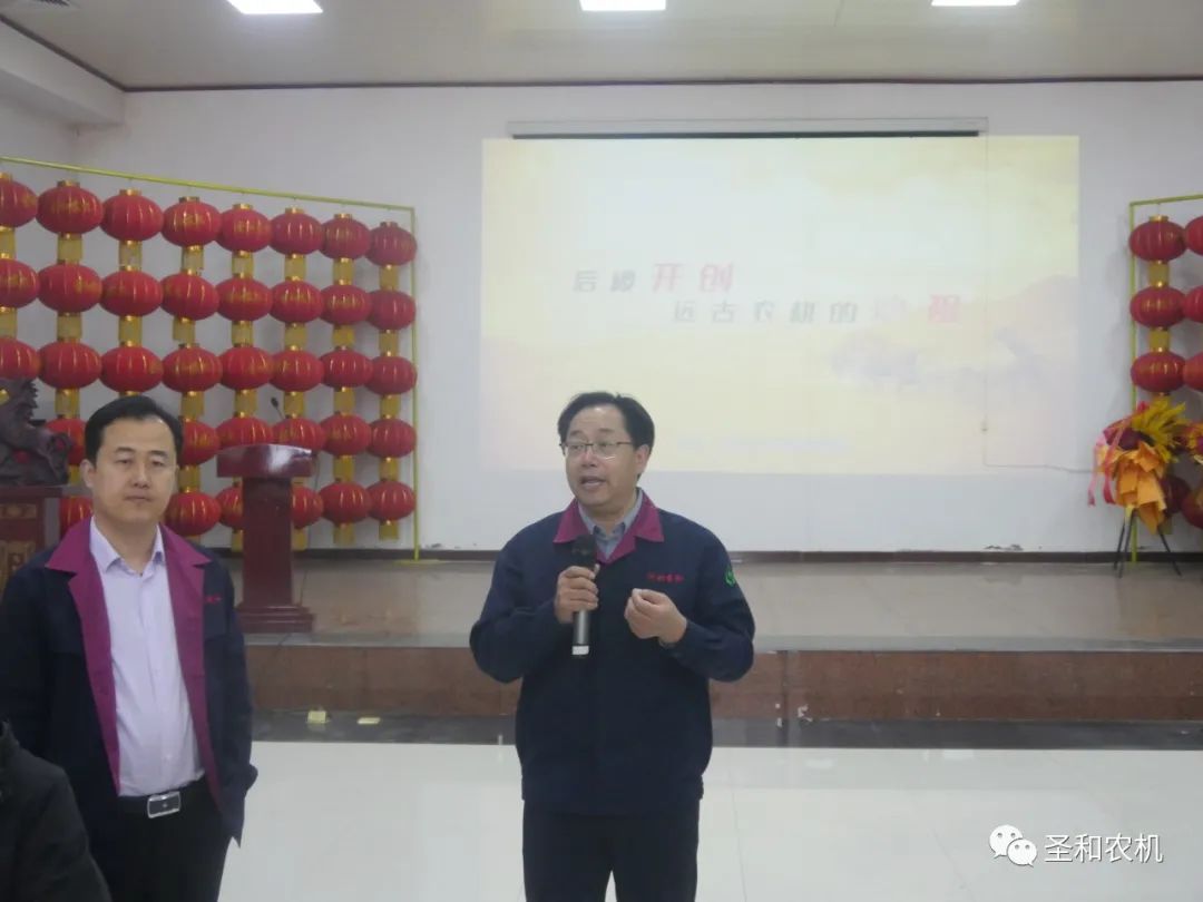 參觀結(jié)束后,營銷管理中心總經(jīng)理郭廣彥發(fā)表致詞,對大家的到來表示歡迎,圣和的發(fā)展離不開廣大客戶的支持,圣和將為大家生產(chǎn)優(yōu)質(zhì)農(nóng)機,做好品牌,與大家合作共贏。