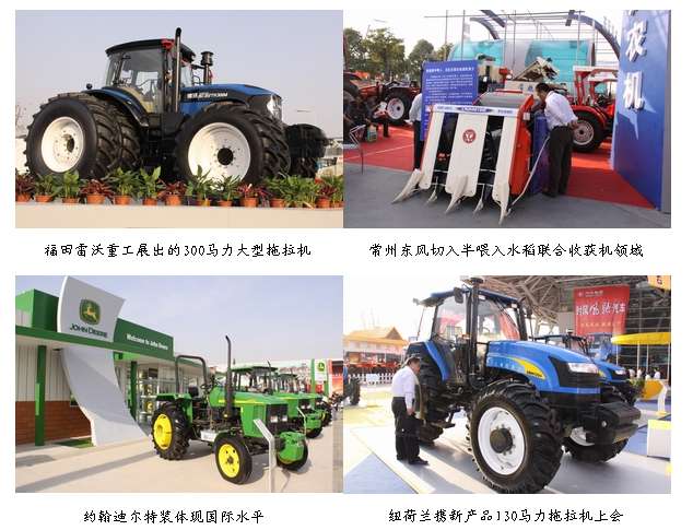這次參展的企業(yè)在會(huì)上集中展示了品種最全、性能優(yōu)良、技術(shù)先進(jìn)的各種農(nóng)業(yè)機(jī)械產(chǎn)品。在展臺(tái)特裝設(shè)計(jì)上,突出顯示了企業(yè)的發(fā)展成績與國際接軌的水平。福田雷沃重工、山東時(shí)風(fēng)集團(tuán)、中國一拖、山東五征、常州東風(fēng)等國內(nèi)農(nóng)機(jī)龍頭企業(yè)均攜帶企業(yè)最為先進(jìn)的產(chǎn)品參加了會(huì)議,參展面積也為歷年來最大,體現(xiàn)了企業(yè)的強(qiáng)大實(shí)力;約翰迪爾中國市場部、久保田(蘇州)、上海紐荷蘭等企業(yè)的展臺(tái)特裝創(chuàng)意獨(dú)具一格,成為展覽場館中亮麗的風(fēng)景線。
